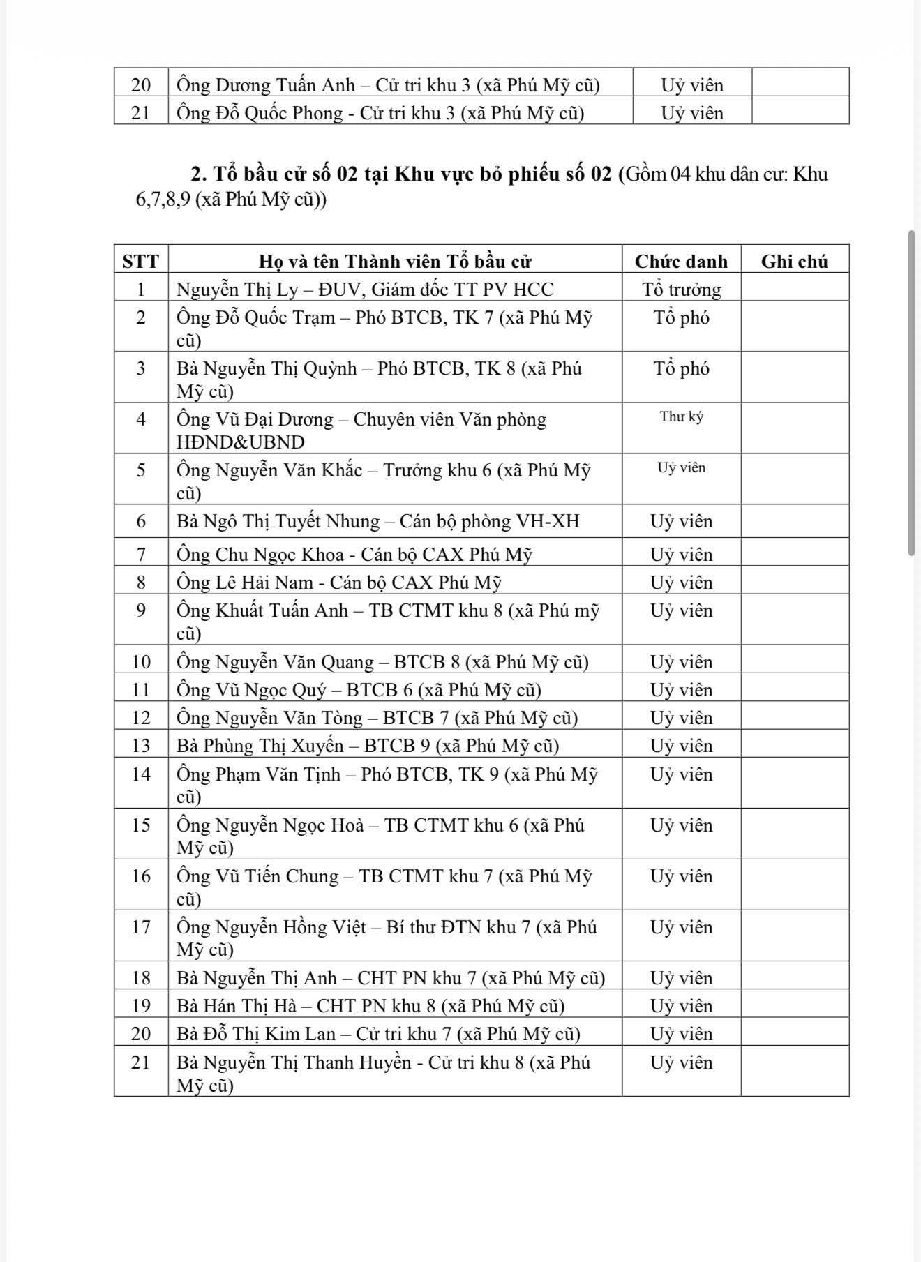 QUYẾT ĐỊNH Về việc thành lập Tổ bầu cử đại biểu Quốc hội khóa XVI và đại biểu HĐND các cấp, nhiệm kỳ 2026-2031 tại các khu vực bỏ phiếu trên địa bàn xã Phú Mỹ