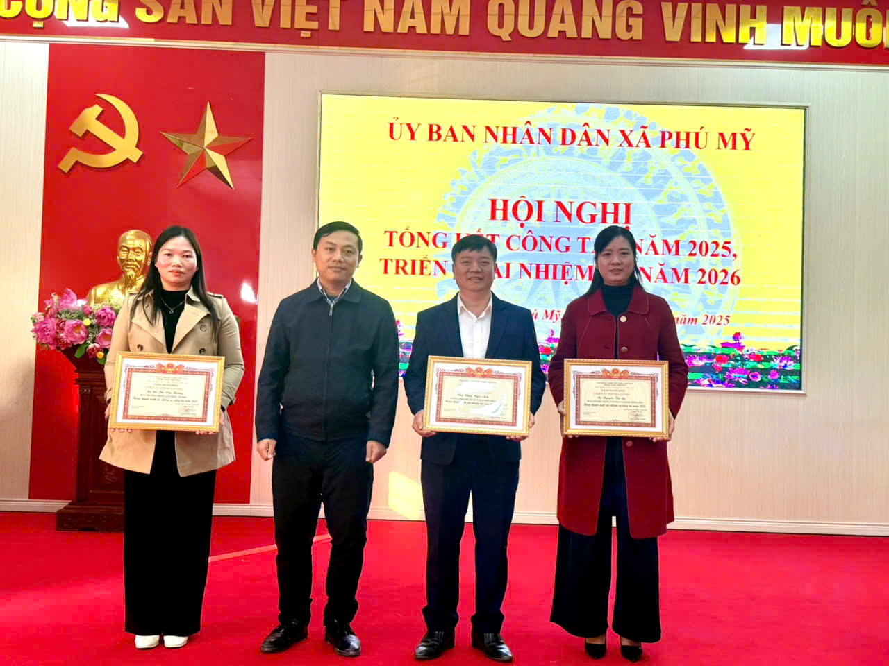 Tổng kết công tác năm 2025, chi bộ UBND xã Phú Mỹ và các cá nhân đã được Ban Thường vụ Đảng uỷ tặng Danh hiệu “Chiến sĩ thi đua cơ sở” và Giấy khen “hoàn thành xuất sắc nhiệm vụ” năm 2025.