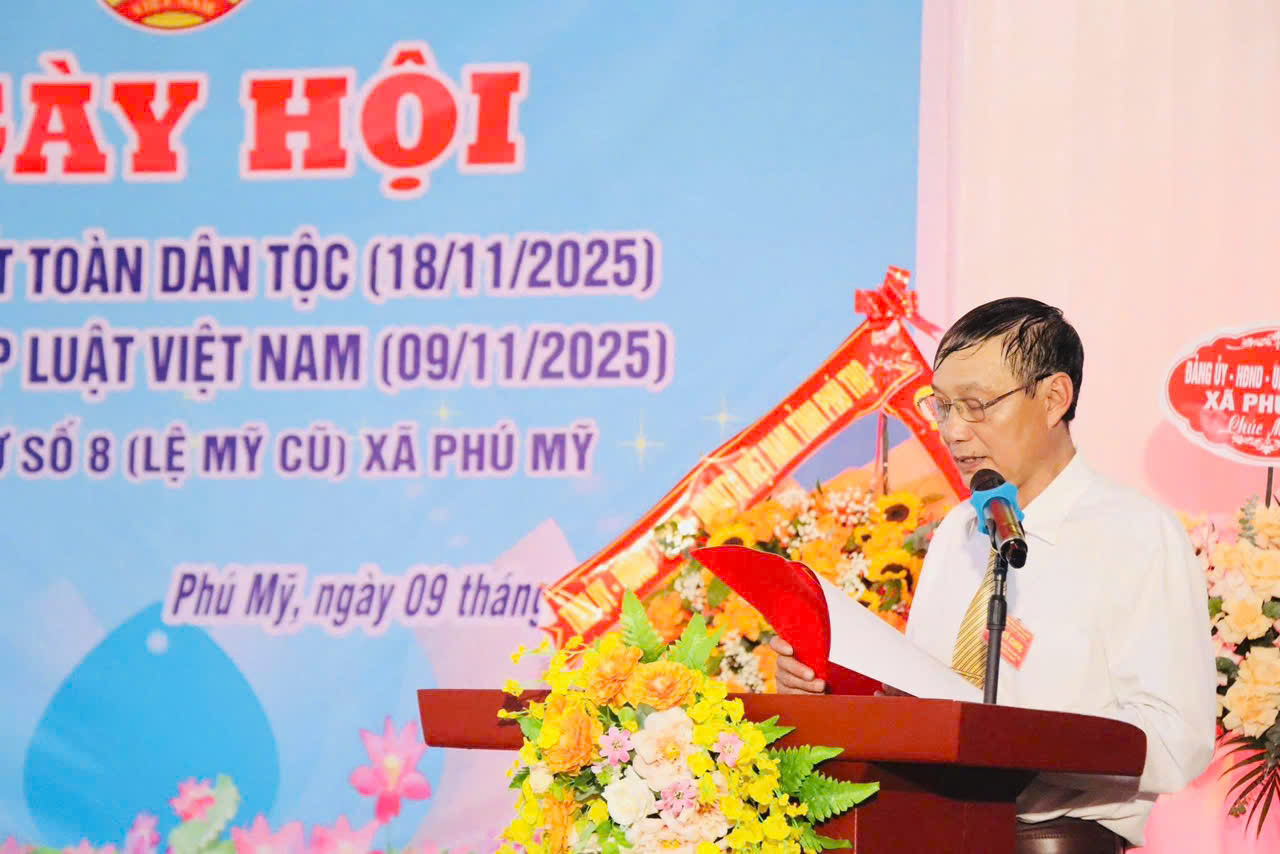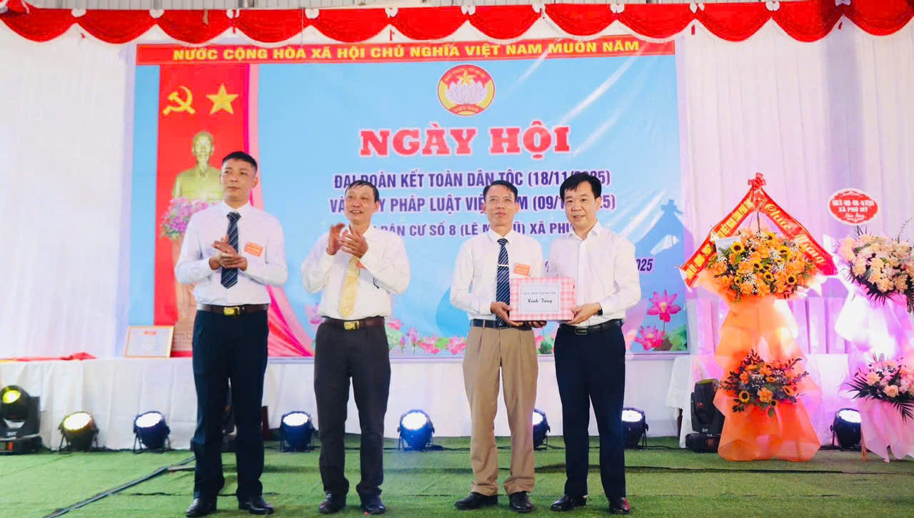 Sáng 09/11/2025, đồng chí Phan Trọng Tấn – Ủy viên Ban Thường vụ Tỉnh ủy, Phó Chủ tịch UBND tỉnh Phú Thọ đến dự, chung vui Ngày hội Đại đoàn kết toàn dân tộc và Ngày Pháp luật Việt Nam với Nhân dân khu 8 (Lệ Mỹ cũ), xã Phú Mỹ. Cùng dự có đồng chí Đặng Thị Tình – Phó trưởng Ban pháp chế HĐND tỉnh; đồng chí Nguyễn Thế Dũng – Phó trưởng Ban Tổ chức Tỉnh ủy; đồng chí Đào Minh Hải – Phó Giám đốc Sở Tư pháp tỉnh; đồng chí Nguyễn Văn Lực – Phó Chánh VP UBMTTQ tỉnh; đồng chí Đỗ Ngọc Quỳnh – Phó trưởng phòng Nông nghiệp và Môi trường UBND tỉnh Phú Thọ.