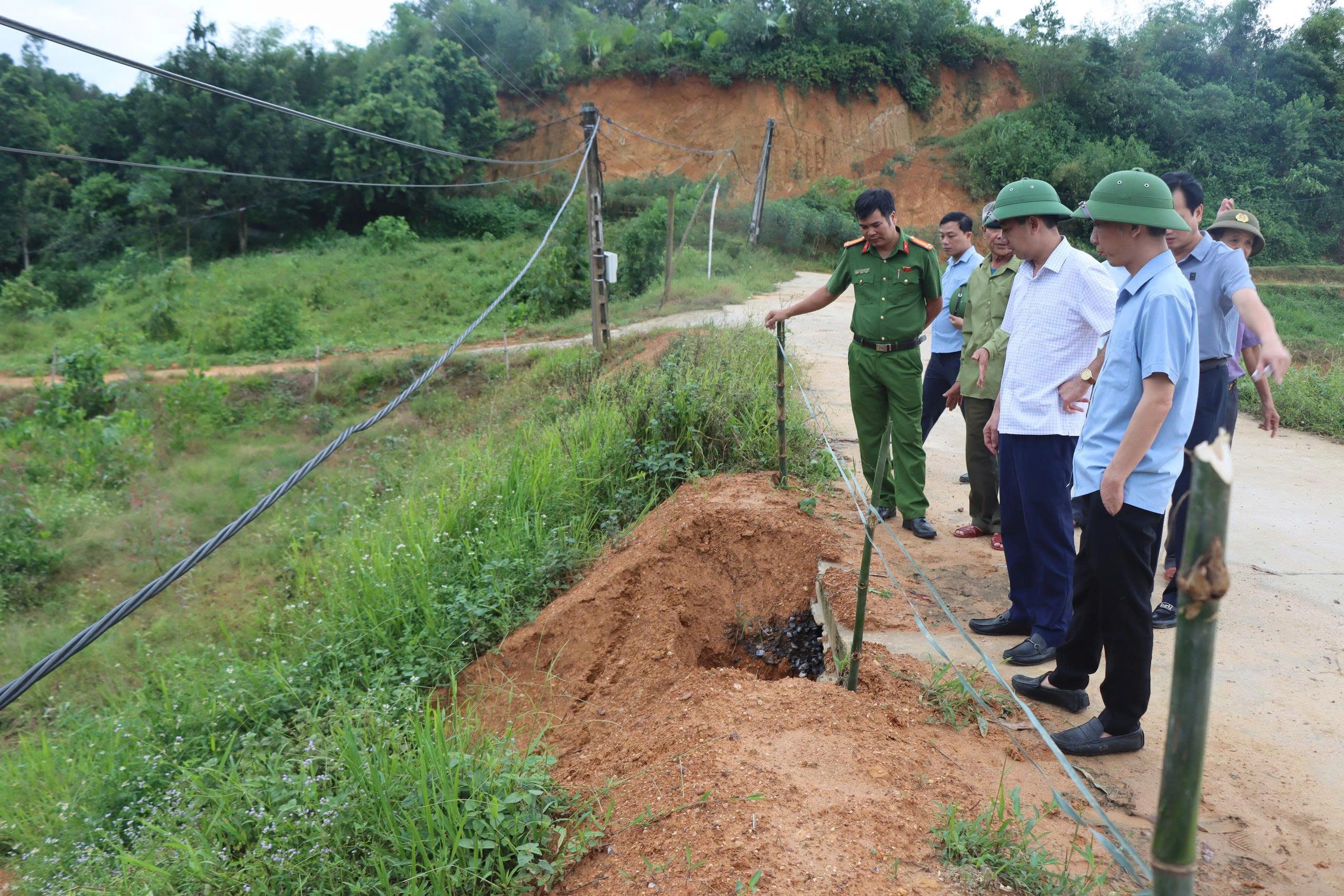 Lãnh đạo UBND xã Phú Mỹ kiểm tra các điểm sạt lở do ảnh hưởng của cơn bão số 10 và số 11.